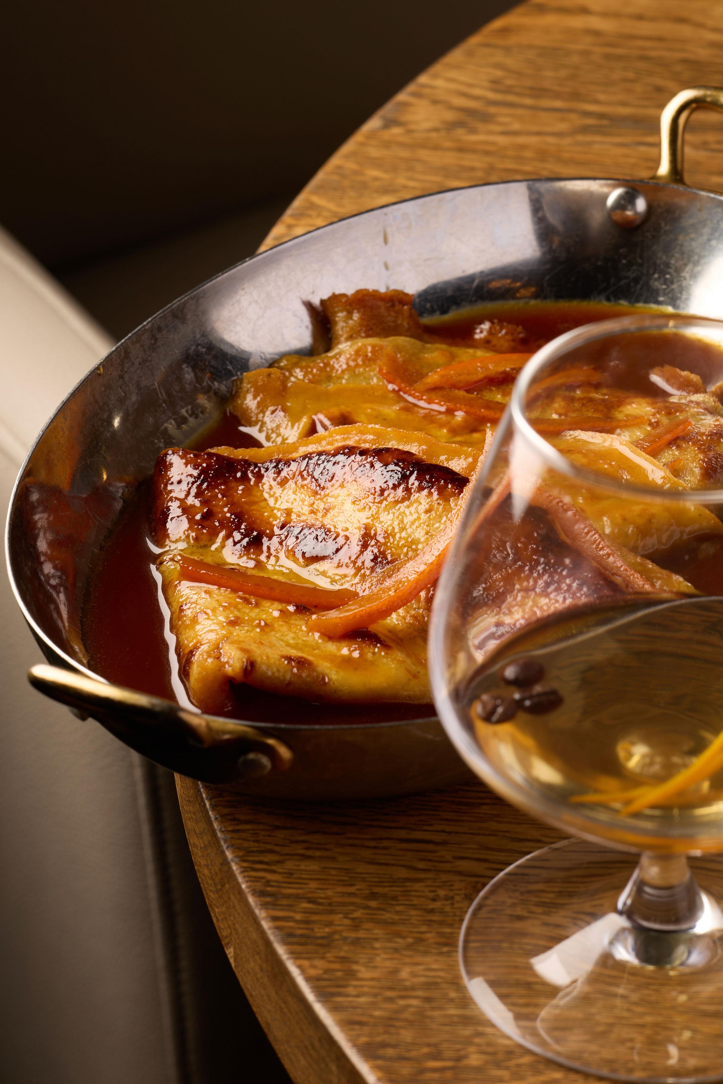 Munster au four, pomme grenailles sautées, flambée à l'alcool du moment